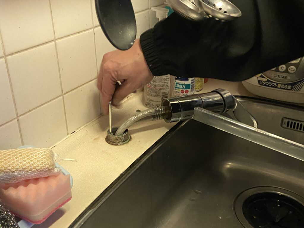 古い水栓を外した後は、汚れをきれいに拭き取り、新しい混合水栓を設置して完了です!