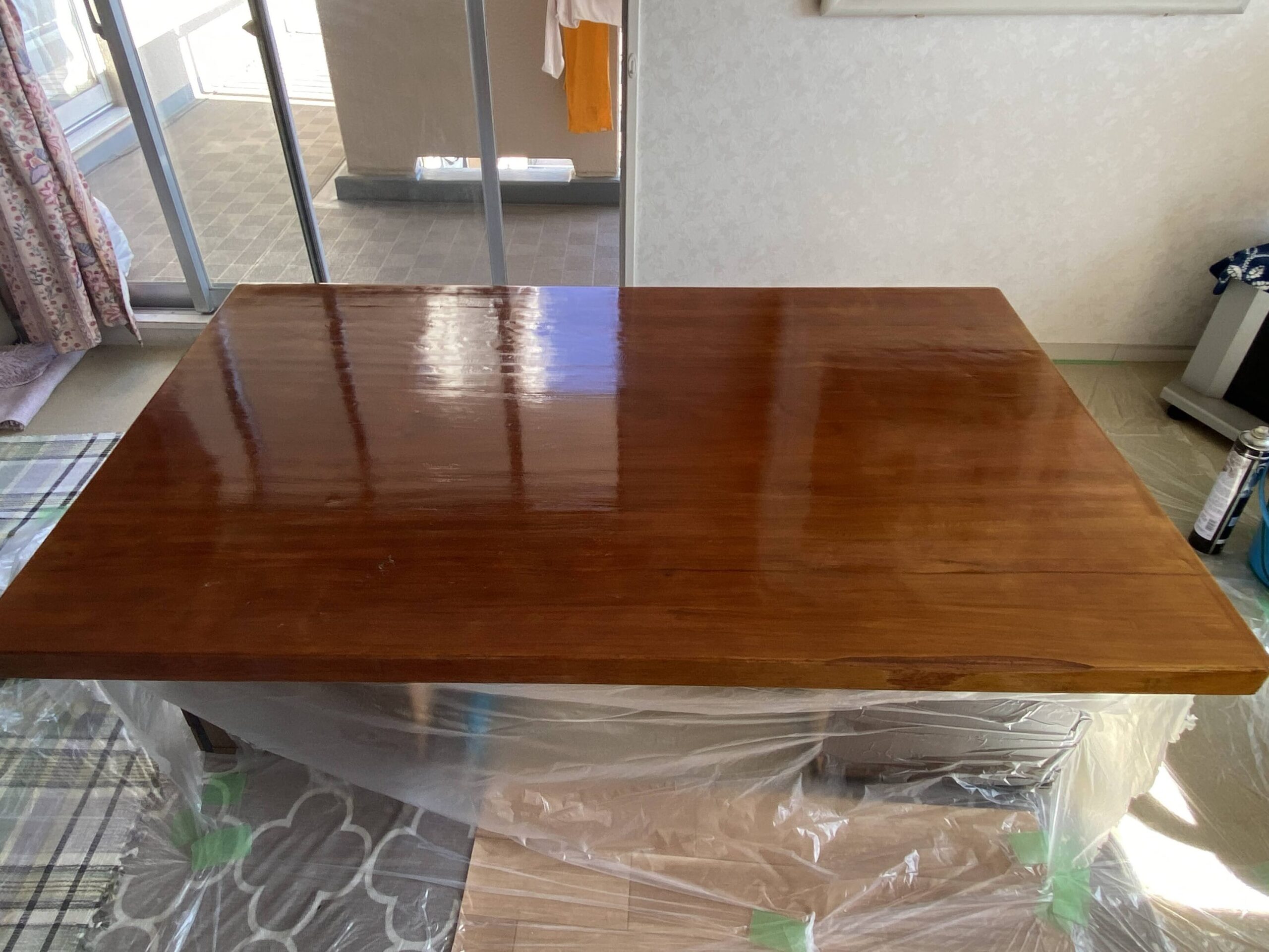 【江東区】愛着のある一枚板テーブルが復活!塗装剥がれも「新品みたい」な輝きに