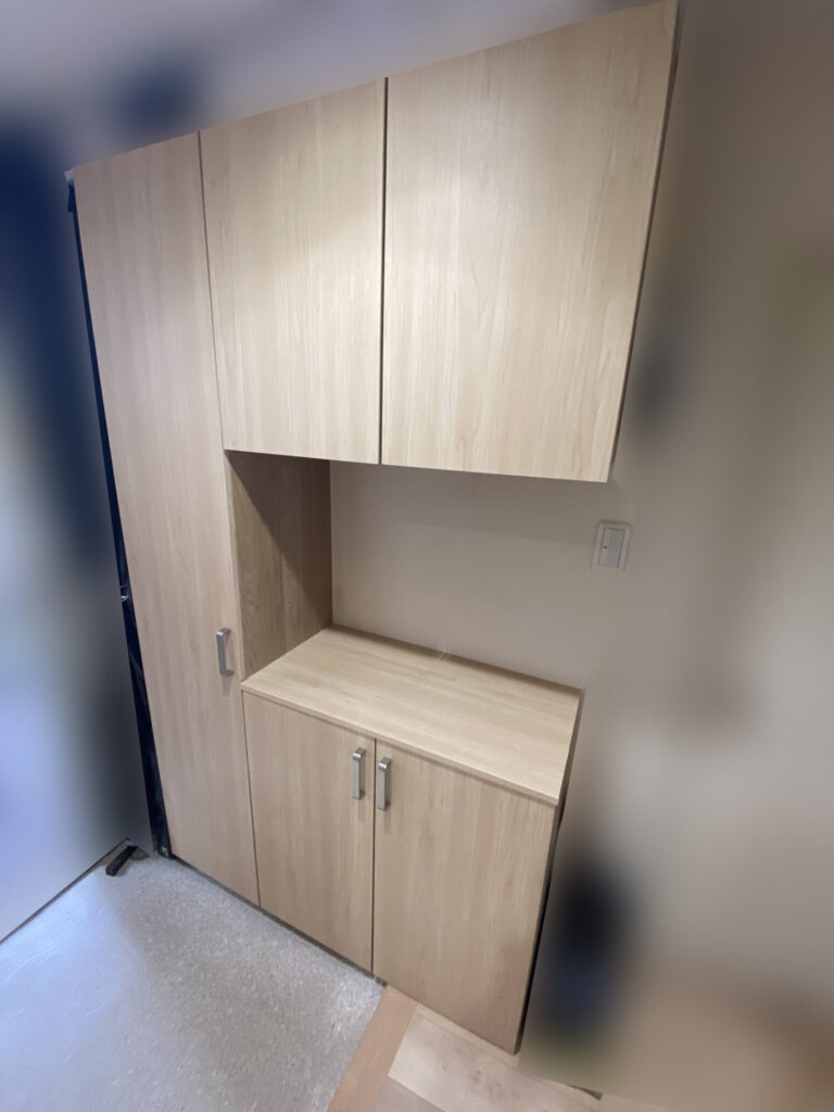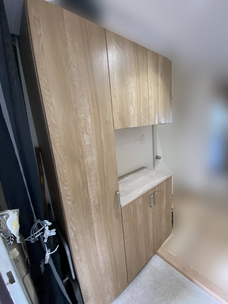 「玄関収納のシートが浮いてシワシワになってしまった」とご相談をいただきました。
