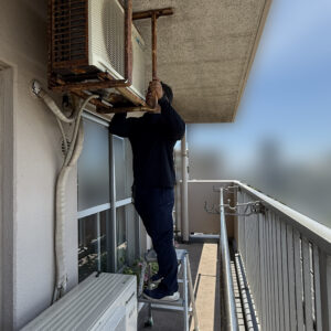 団地にお住まいの方で、ベランダの天井に室外機が吊るされているのを見…